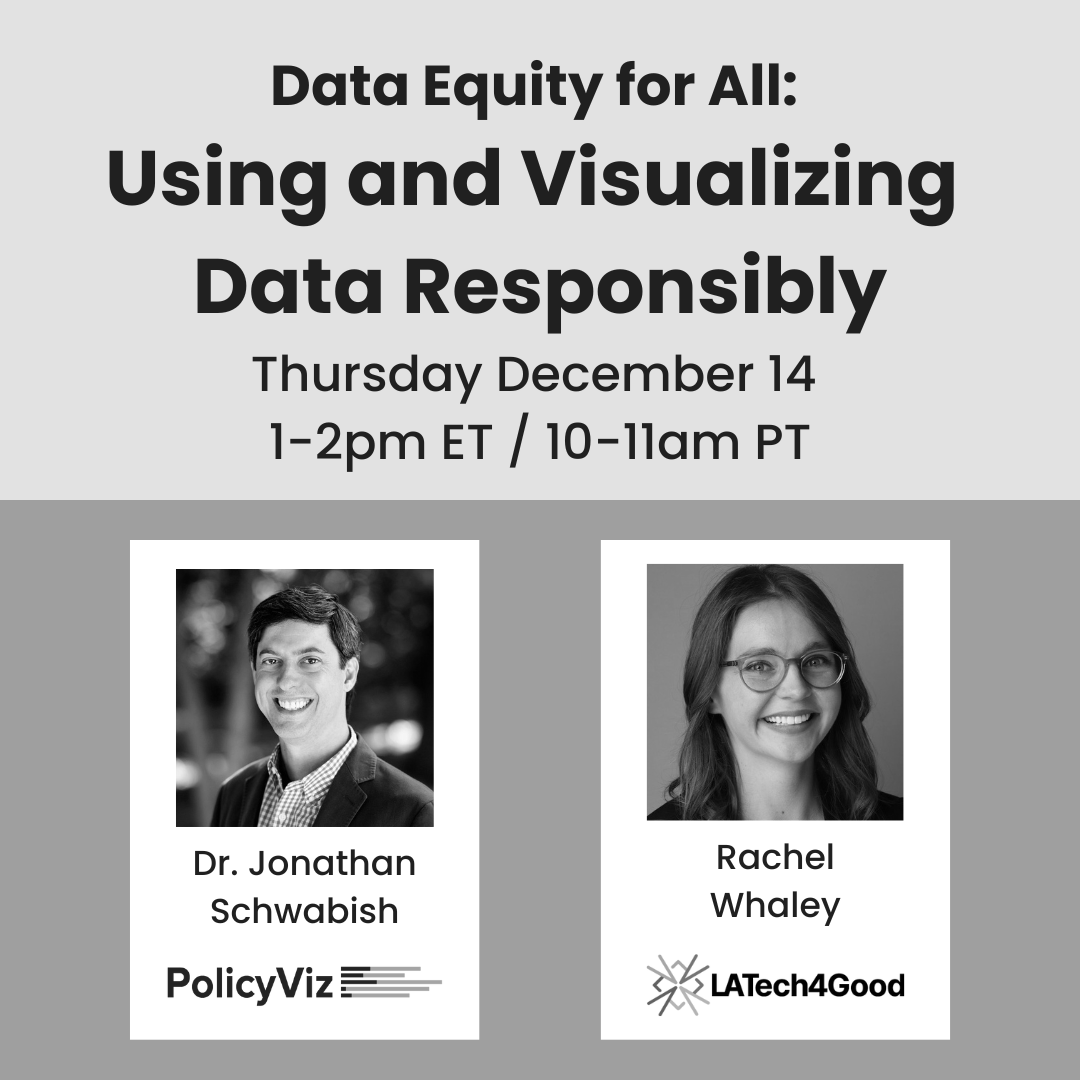 Calling all data practitioners! LA Tech4Good and PolicyViz are teaming up to offer a free webinar on using and visualizing data responsibly, equitably, and ethically.
